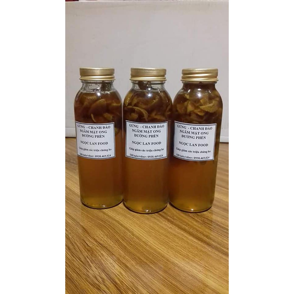 Gừng chanh đào mật ong. Hết ho, hết viêm họng hiệu quả. Chai 300 ml.