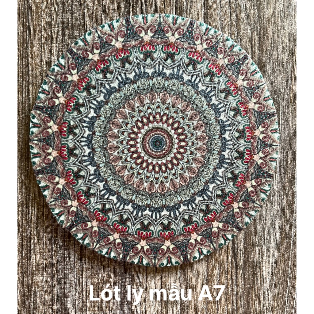 Lót ly, lót cốc, đế đa năng 10cm chất liệu nỉ thấm hút nước, đế cao su chống trơn trượt nhiều mẫu cho bạn lựa chọn free ship